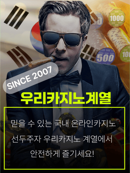 2007년 처음 서비스를 시작한 우리카지노는 바카라, 블랙잭, 슬롯을 제공하는 카지노 플랫폼입니다. 우리카지노란 사이트 이름이 아닌 현재 대표 브랜드인 더킹카지노, 프리카지노, 조이카지노와 같은 브랜드 명칭을 뜻합니다. 그 외에 코인카지노, 007카지노, 더존카지노가 있으며, 우리카지노 계열이 수많은 이용자들에게 인기 있는 이유는 우리카지노만의 체계적인 쿠폰 시스템과 어떠한 제재도 없는 신뢰할 수 있는 환경을 꼽을 수 있습니다. 또한 우리카지노만의 독점 게임 SA(살롱) 게이밍과 HO(호) 게이밍이 있으며, 에볼루션 게이밍과 프라그마틱 플레이 또한 2024년 정식 계약을 통해 더욱 다양한 경험을 제공하는 것이 특징입니다.
