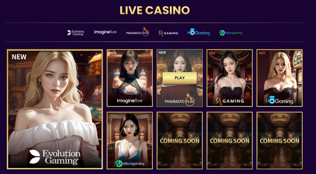 1. 게임에 접속하여 로그인 후 라이브카지노 텝에서 게임사(브랜드)를 고릅니다.